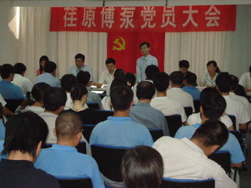本次黨員大會(huì)由黨總支副書記姜作棟同志主持,他首先介紹了黨組織機(jī)構(gòu)的組成:張玉琴同志任黨總支書記,姜作棟同志任黨總支副書記,李正民同志、劉擁民同志、王興春同志分別任統(tǒng)戰(zhàn)委員、組織紀(jì)檢委員、文體宣傳委員。荏原博泵黨總支下設(shè)管理、生產(chǎn)、質(zhì)量和業(yè)務(wù)技術(shù)四個(gè)黨支部,管理黨支部書記由邱建剛同志擔(dān)任,生產(chǎn)黨支部書記由宋遵民同志擔(dān)任,質(zhì)量黨支部書記由郝圣同志擔(dān)任,業(yè)務(wù)技術(shù)黨支部書記由梁文運(yùn)同志擔(dān)任。各黨支部通過民主選舉選出了支部委員。在會(huì)上,黨總支書記張玉琴同志向全體黨員提出要求,一是加強(qiáng)學(xué)習(xí),提高素質(zhì);二是增強(qiáng)黨性,努力工作;三是加強(qiáng)領(lǐng)導(dǎo),發(fā)揮作用。著重強(qiáng)調(diào)了全體黨員不僅要有較高的政治素質(zhì),更要有很強(qiáng)的業(yè)務(wù)能力和技術(shù)水平。要一如既往的發(fā)揮黨員的先鋒模范作用,以企業(yè)經(jīng)濟(jì)發(fā)展為中心任務(wù),身先士卒,帶頭努力干好工作,在營造團(tuán)結(jié)和諧的工作氛圍中發(fā)揮作用。公司總經(jīng)理孫龍平同志在黨員大會(huì)上代表行政領(lǐng)導(dǎo)班子作了重要發(fā)言,指出目前公司正處在打基礎(chǔ)的關(guān)鍵時(shí)期,邊建設(shè)、邊生產(chǎn)、邊供貨、邊發(fā)展。黨組織要充分發(fā)揮政治核心作用,領(lǐng)導(dǎo)工會(huì)、共青團(tuán)等群眾組織,團(tuán)結(jié)凝聚廣大員工,貫徹黨的方針政策,促進(jìn)企業(yè)健康發(fā)展。