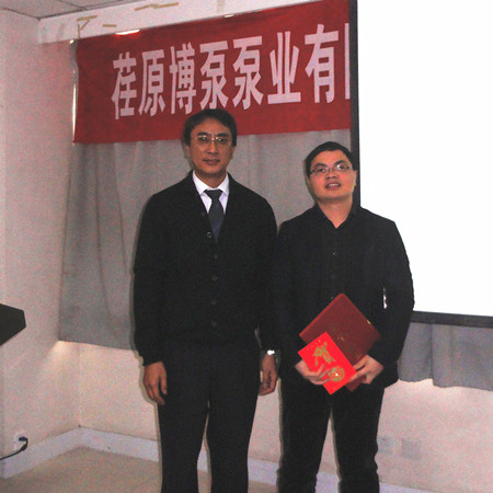 最后,對2012年度優(yōu)秀業(yè)務(wù)員――高文旭、優(yōu)秀技術(shù)工程師――夏紅軍進(jìn)行了表彰,總經(jīng)理志賀進(jìn)先生親自為他們頒發(fā)了證書及獎金。